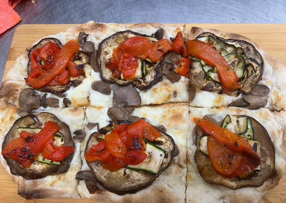 Mozzarella, melanzana, peperoni, funghi, zucchine