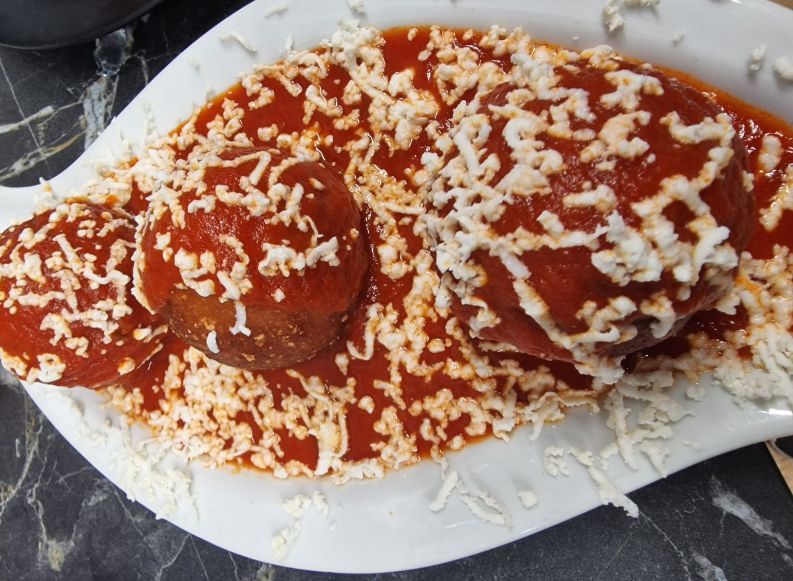 Polpettine di melanzane artigianali, con sughetto e Parmigiano Reggiano