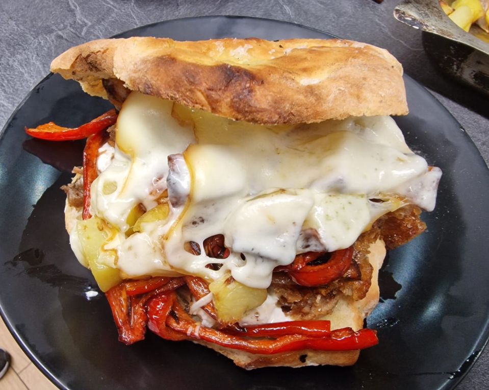 Porchetta artigianale, peperoni fritti, provola artigianale, patate al forno, stracciatella e salsa tartufata